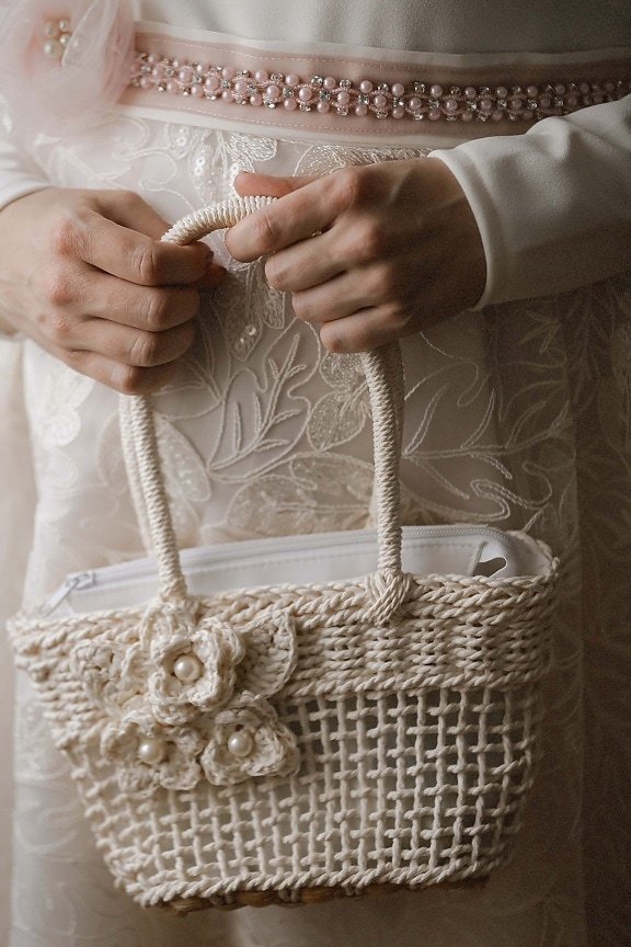 A crochet handbag is a bag crafted from yarn with a crochet hook, intended to be worn over the shoulder using a long strap. It merges the design of a handbag with the artisanal, distinctive look of crochet, and can be tailored in size, color, and pattern. These bags vary from basic tote designs to intricate patterns and are ideal for transporting daily necessities.