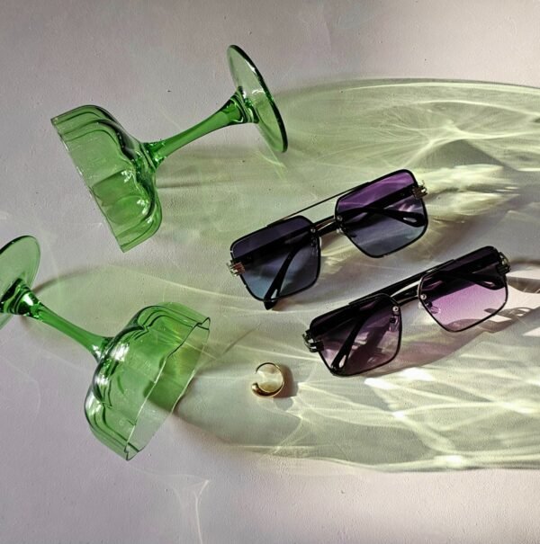 Enhance your look with the Eclipse Shades. These sunglasses are not just an accessory, they show your bold and modern style. The square frames and soft gradient lenses in purple and blue shades give a trendy and slightly retro touch. With sleek black sides and a stylish metal bridge, they help you stand out wherever you go. Whether you’re enjoying the sunshine or adding a hint of mystery to your outfit, Eclipse Shades bring together fashion and class perfectly.